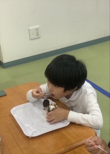 あかいわ館では先日、おやつレクでパフェを作りました!