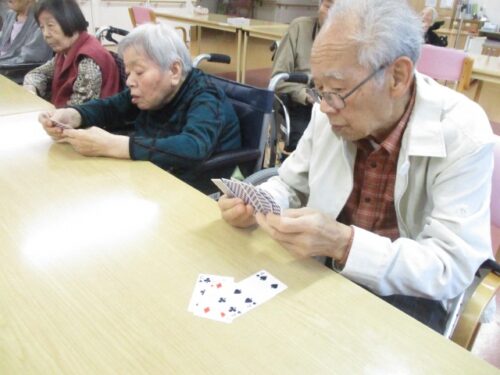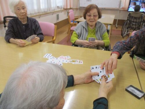 さわやかいなざわ館 トランプ♫ 【さわやかいなざわ館】 2024-11-05 2024-11-05 皆様、こんにちは☁ 今日はスッキリしない天気でしたね。 3階フロアでは午後からトランプを行いました♣ 定番の『ババ抜き』です(^▽^)/ 皆様、ルールもバッチリです。 施設で育てている菊も開花まであと少しです 素敵な色ですね! 担当:藤川