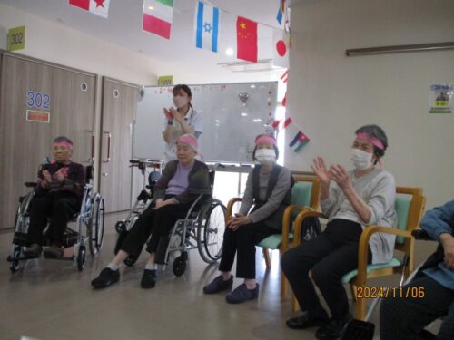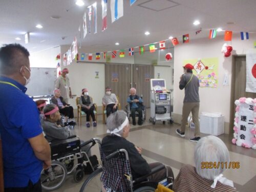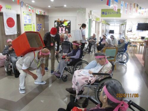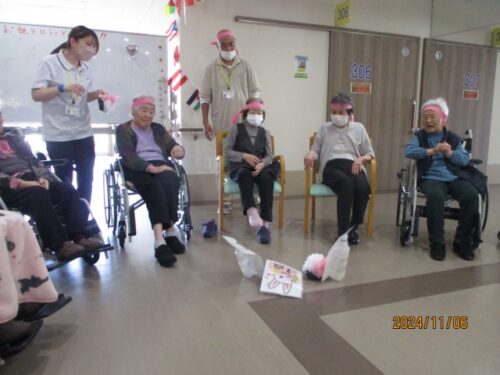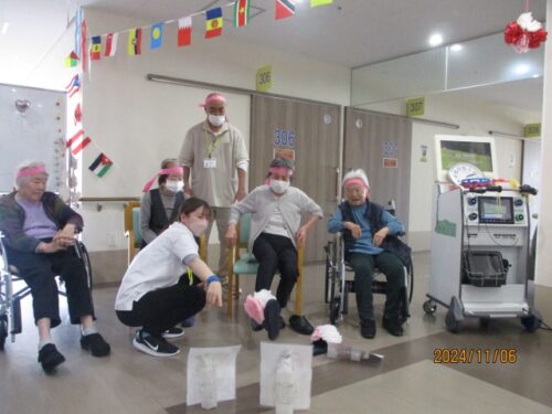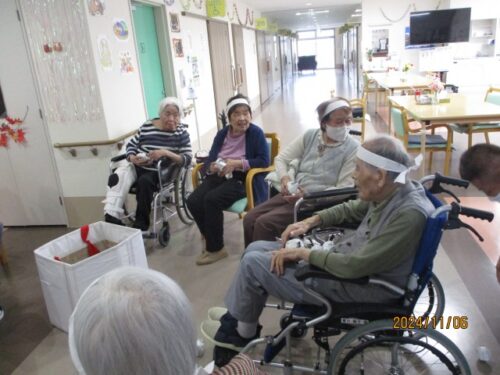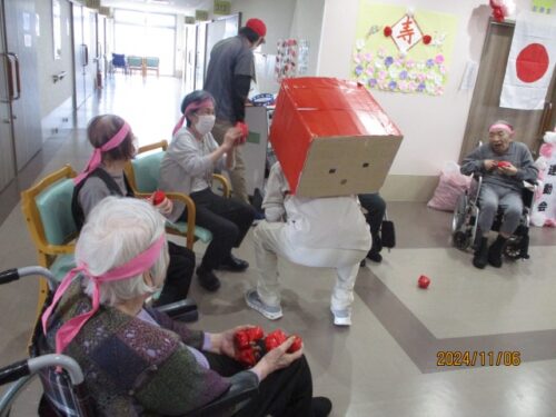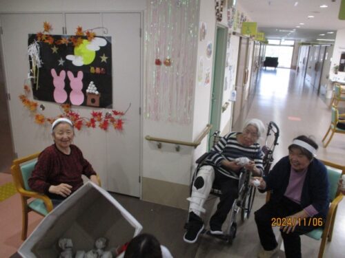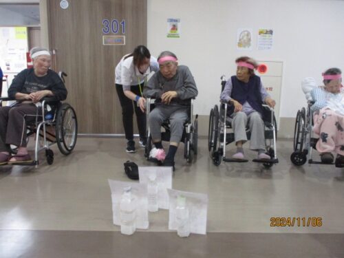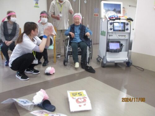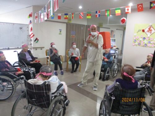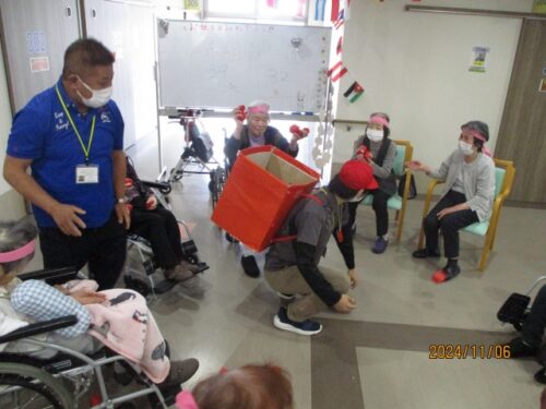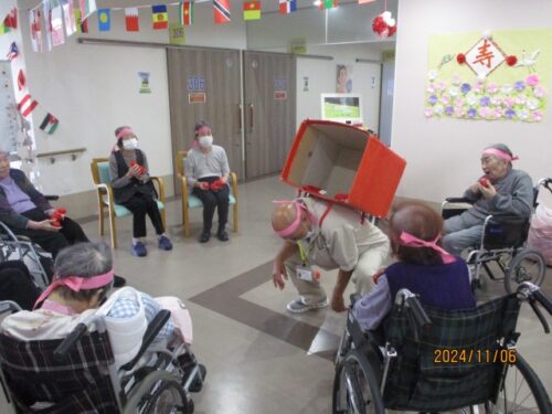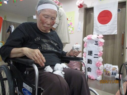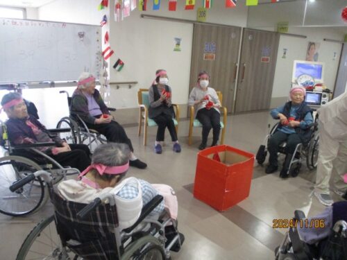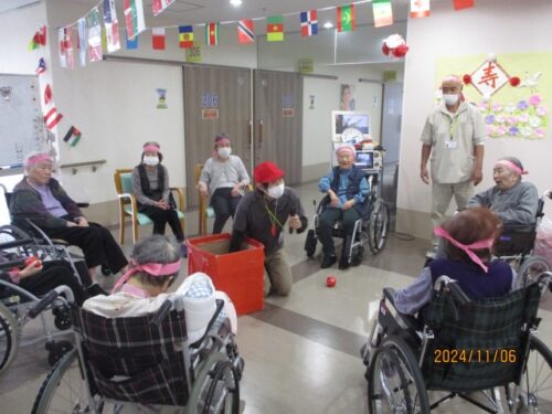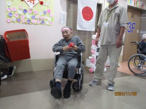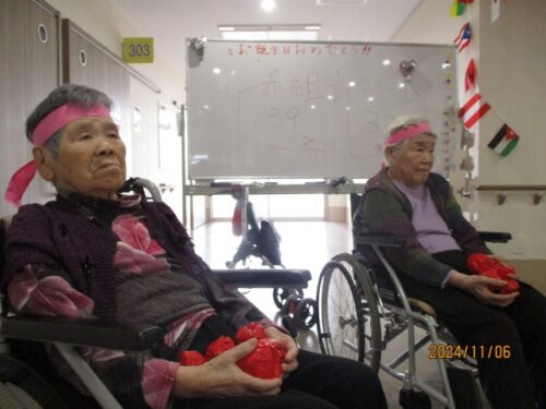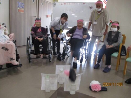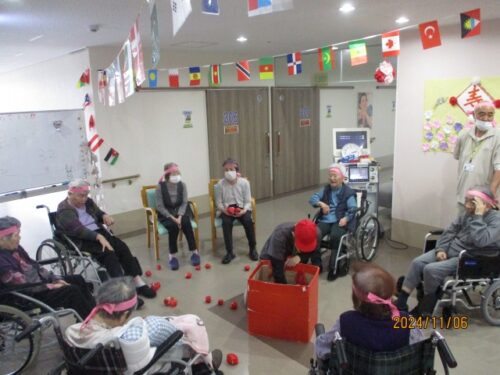 赤白分かれて、スリッパ飛ばしと玉入れの2種目で競い合いました。