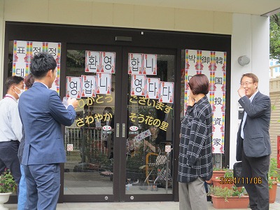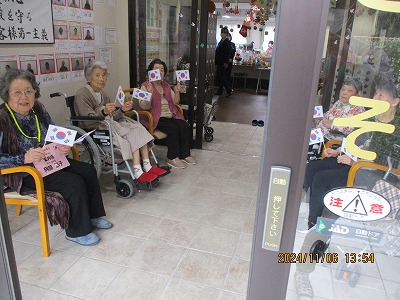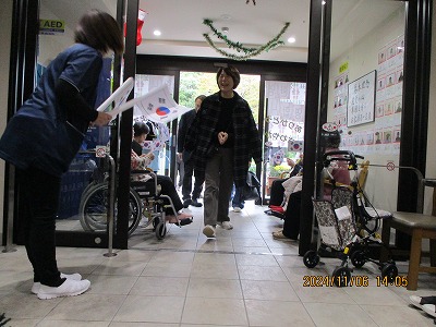 入居者様、職員でお出迎え👋