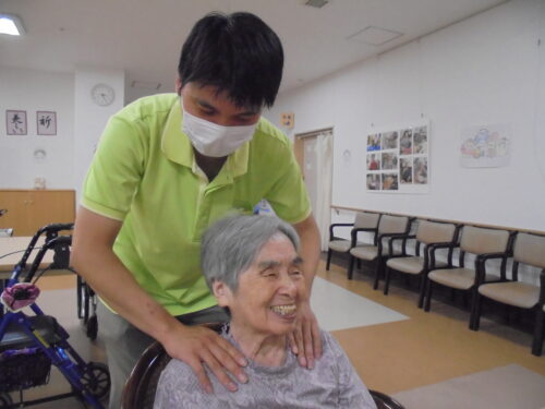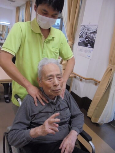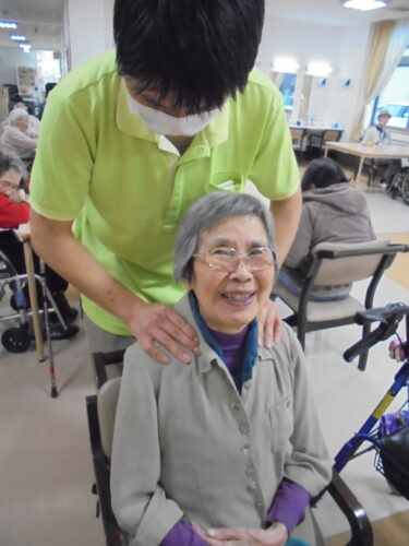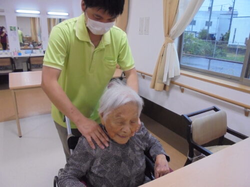 肩もみをした職員に「疲れてない?ありがとうね」と