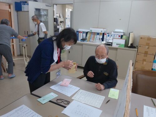 立会人の方が来られて、選挙投票会場で入居者様が、順番に投票されました。