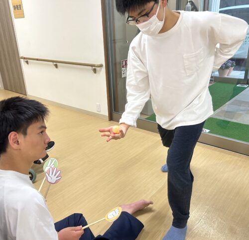 ピンポン玉を持って、勝ち抜いたら1点ゲット出来ます🎖️✨