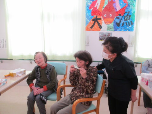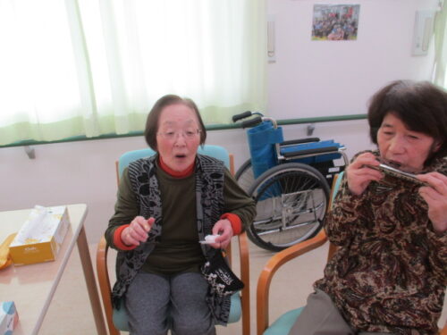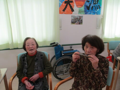 舩木様が歌を、平塚様がハーモニカを吹き楽しまれております!!!