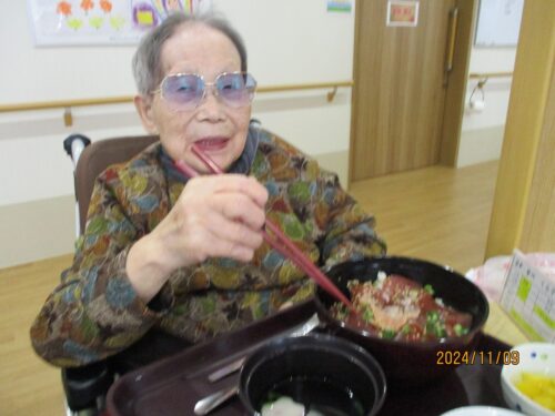 皆さま待ちに待ったマグロ丼『美味しい美味しい』とペロリと完食