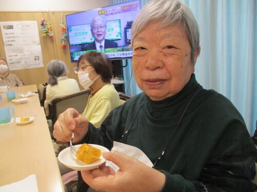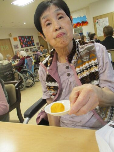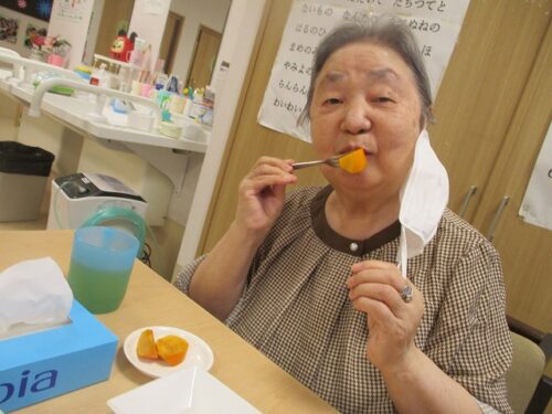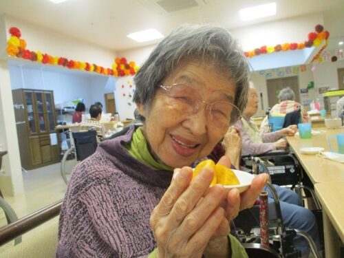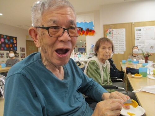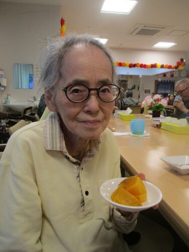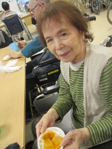 2Fフロアでは、おやつに柿を食べました。