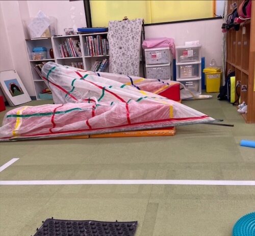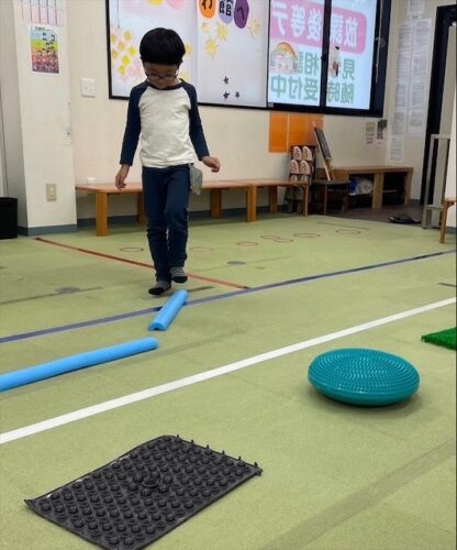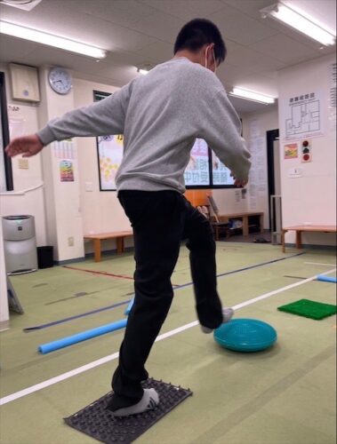 最後は足ツボマットや人工芝、バランスディスクの上を歩きました👣