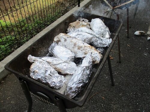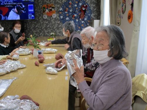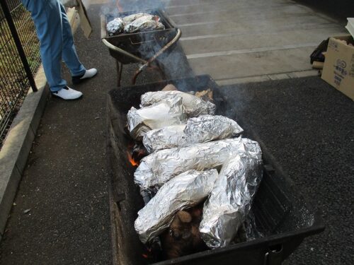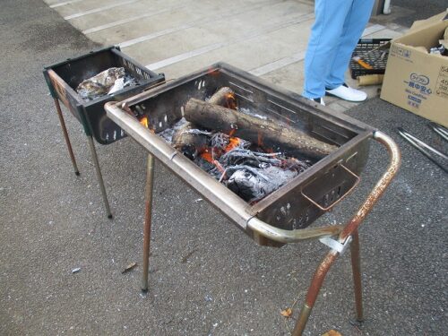 ハロウィンパーティーの為焼き芋作りの準備が始まりました