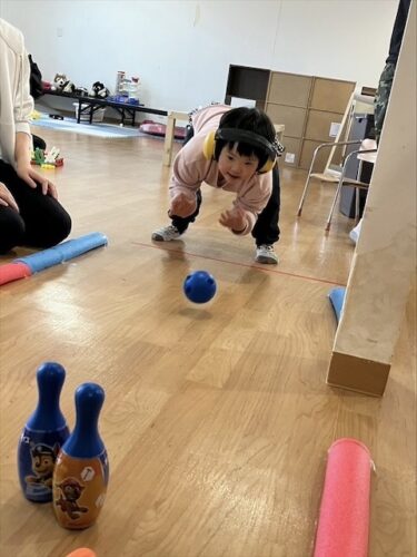 お友達から「こっちだよー」と優しく声をかけてもらい上手に投げられました🥰