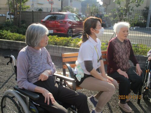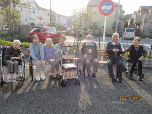 さわやかながれやま館 秋の空気を感じよう♪(流山市介護付有料老人ホーム さわやかながれやま館) 2024-11-12 2024-12-31 秋の空気を感じに散歩に出ました♪ 優しい陽の光が霞んで幻想的です。 しりとりをしながら、陽にあたって背中はぽっかぽか 仲良く椅子を譲り合う場面もあり 暖かな雰囲気に包まれた午後のひととき・・・❤ ながれやま館 ふじしま