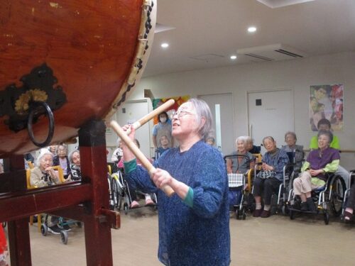 和太鼓演奏のあとご入居者様も・・・