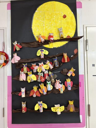 可愛いフクロウ達はホールの壁に
