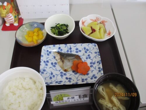 ご飯・鰺の塩焼き・さつま芋のレモン煮