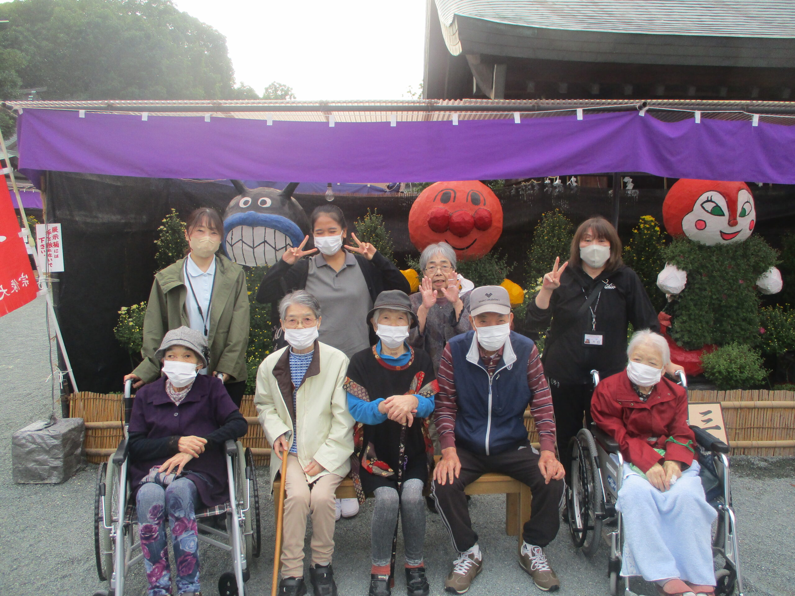 さわやか花美弐番館 さわやか花美館 菊花展💐 2024-11-14 2024-11-13 数日間にわたり今年も行ってまいりました! 宗像大社で毎年開催される 【西日本菊花大会】 皆様楽しく過ごされていらっしゃいました✨ 写真にあるように藁で作った小屋もあり童心にかえる姿も見ることができました☺️😂