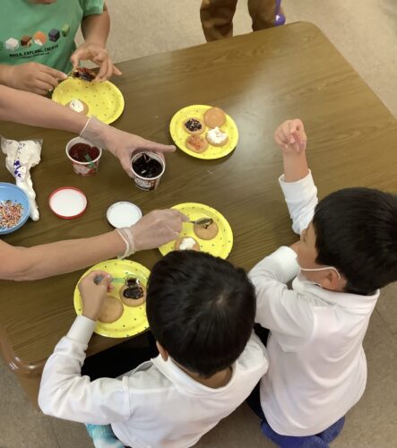 今日のおやつは、自分たちでクッキーをデコレーション😉