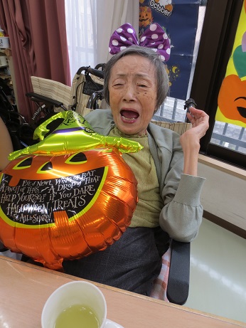 入居者様に、ハロウィンの衣装でおめかしです🎃
