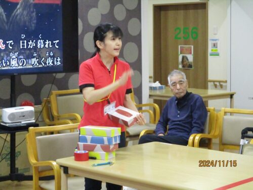 こんにちは、今日のレクリエーションは円谷(つむらや)職員の