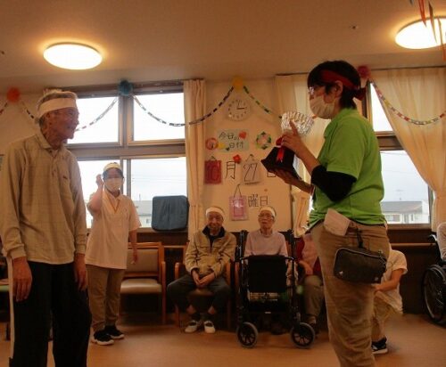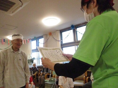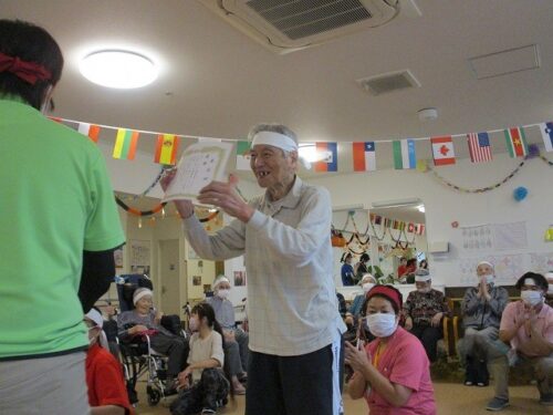 赤チーム代表のご入居者様へ、賞状もお渡しさせていただきました!