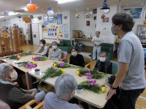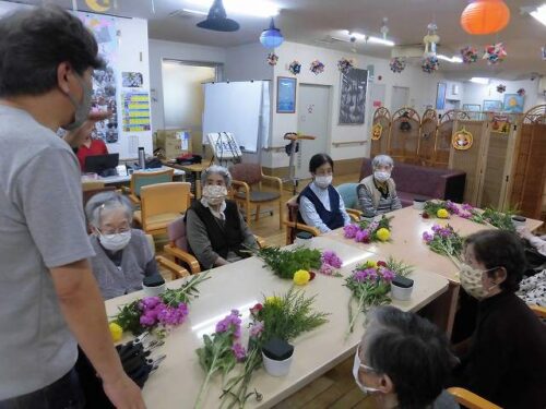 ・・・詫摩施設長も、赴任して初めての螢風館での「フラワーアレンジメント教室💐」に