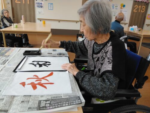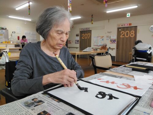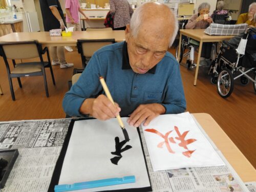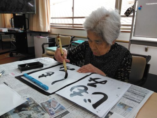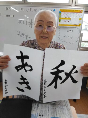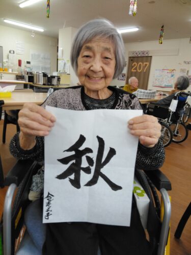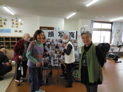 おかざき館には、玄関先に笑顔写真のコーナーがあります。