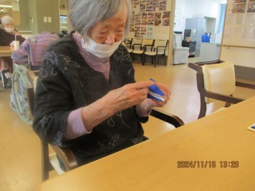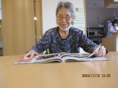 さわやかくまがや館 日常の一コマ 2024-11-18 2024-11-17 1階食堂にてI様雑誌読んでいらっしゃるところを発見✨✨ N様鶴を思い出しながら折っております"(-""-)" 雑誌の内容はお菓子の内容です💕 昔息子様に手作りしていたそうです🌟 集中して折っております😊 投稿者:猫編集長🐈