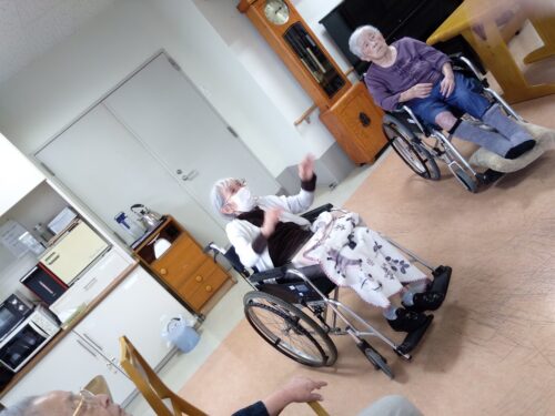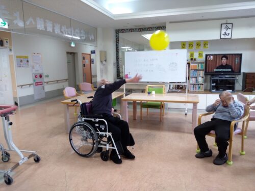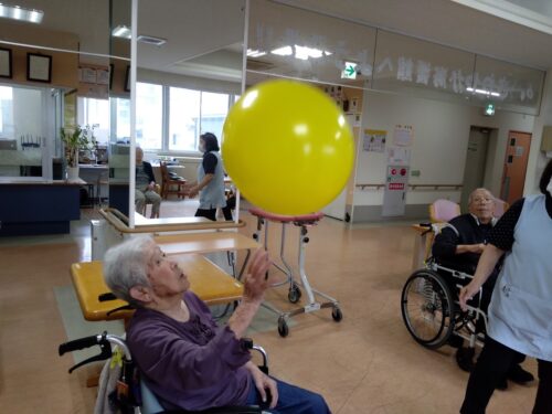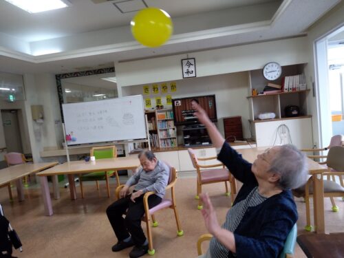 その後は2階の入居者様と一緒に風船バレーを行い、楽しんでいただきました。