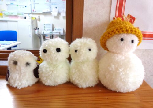 可愛い雪だるま兄妹の帽子を編んでくださっています⛄