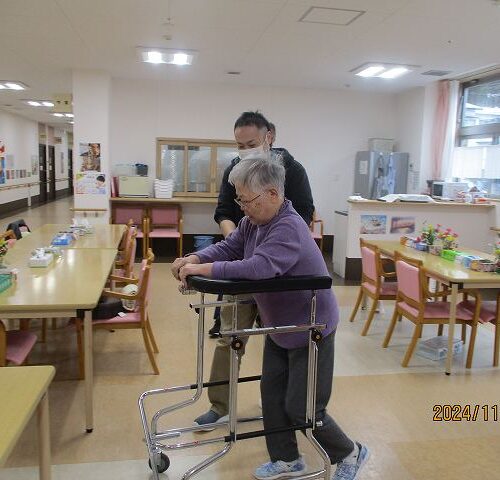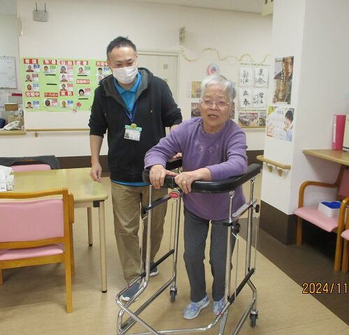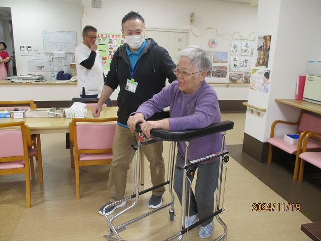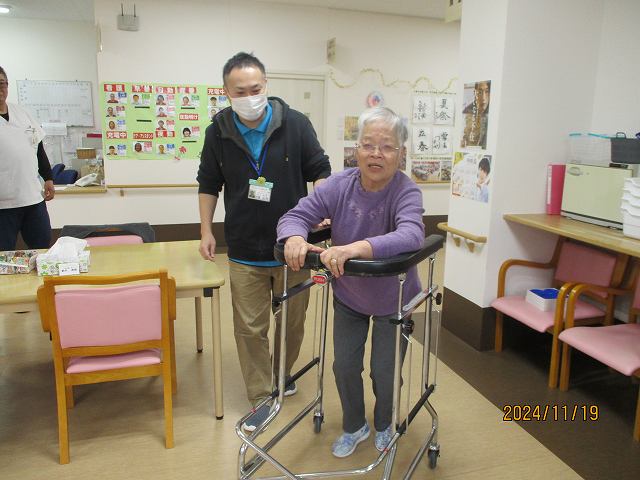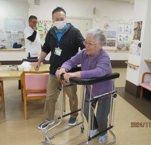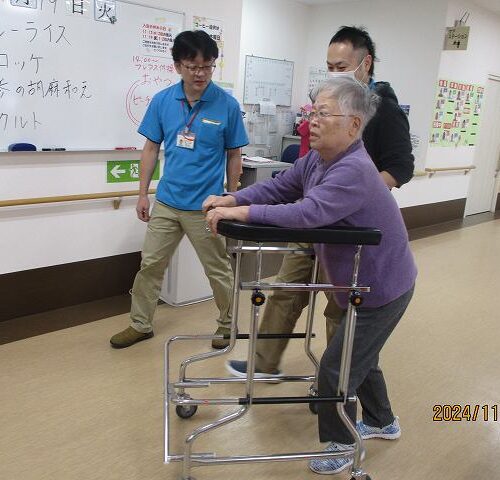 場面は変わって現在車椅子に乗られている方が頑張って歩行練習!