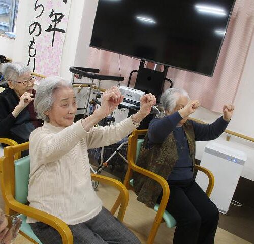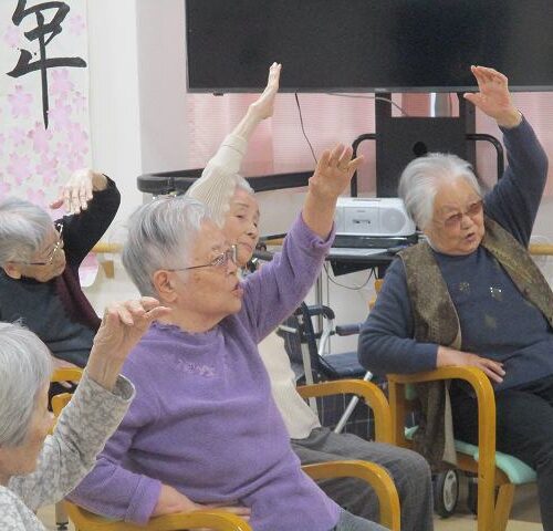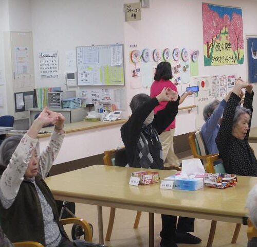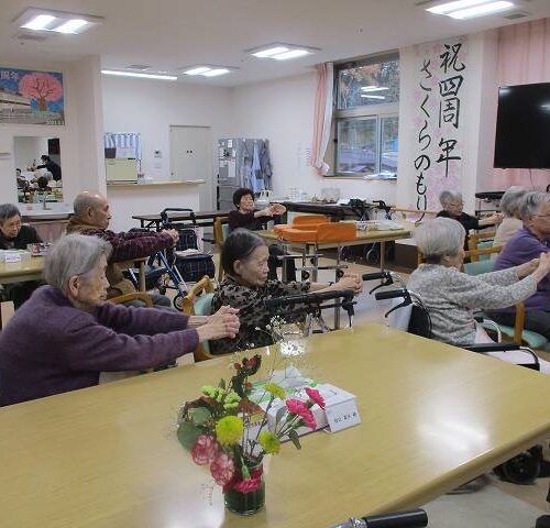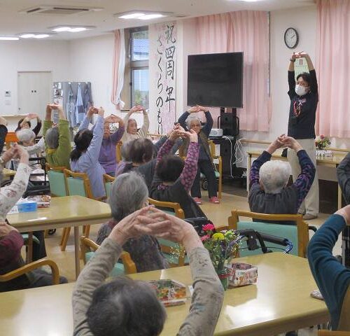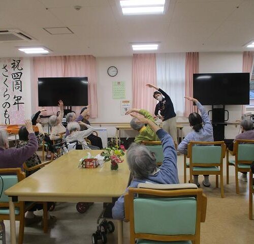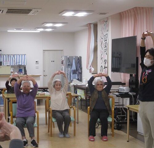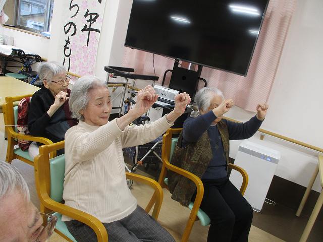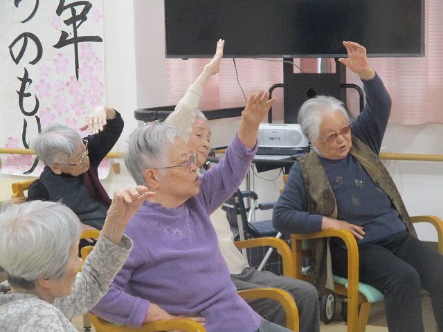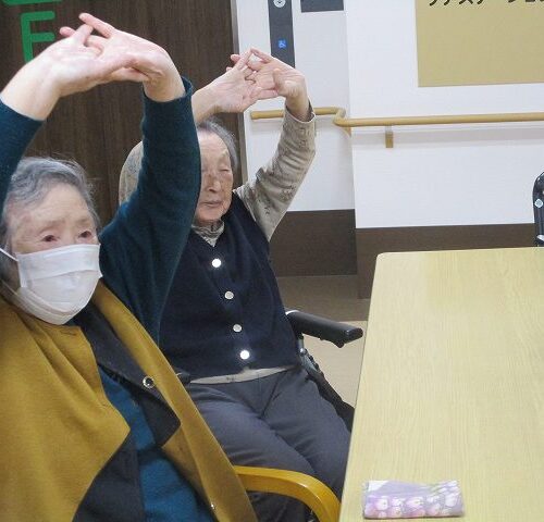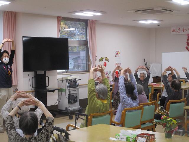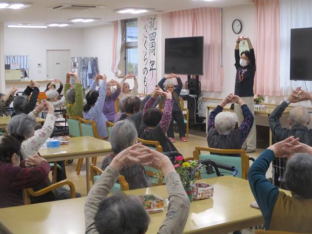 今日はマッサージのフレアスさんから体操のレクリエーションを行って頂きました!