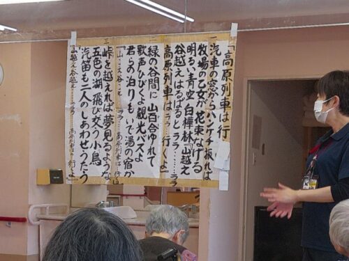 午後の3階フロアのレクリエーション♪は、体操の後歌会レクでした。