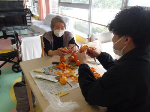 入居者様と職員数名、剝き続ける事3時間頑張りました(* ̄0 ̄)/ オゥッ!!