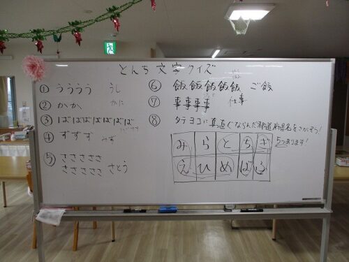 さわやか室蘭弐番館 3階 19日活力朝礼♪ 2024-11-20 2024-11-20 皆様こんにちは♪ 昨日の様子をお届けします 9時からラジオ体操です ぶれてしまいました😢 素晴らしい屈伸力です! 頭の体操はとんち文字クイズです 笑い声溢れる一日になります様に☆