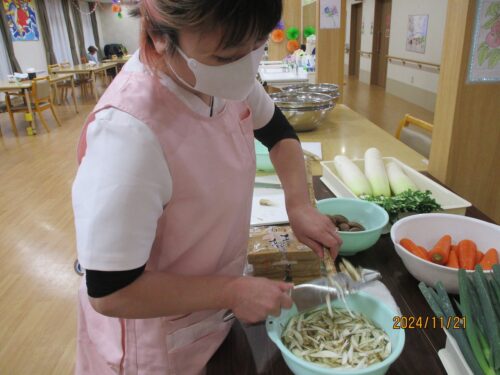 それそれのできる事を力を合わせて、お袋の味とん汁を作ります