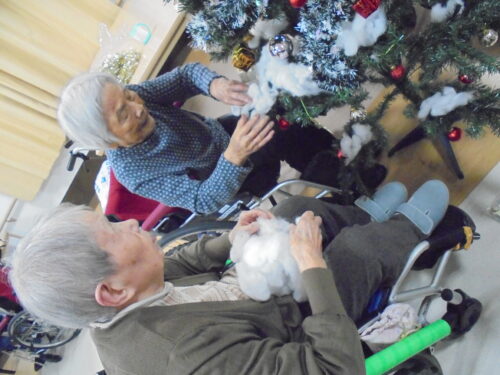 綿の雪を付けていきます⛄