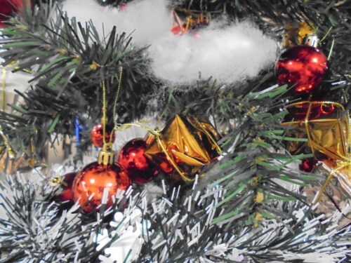 キラキラのモールをツリーに付けた後は