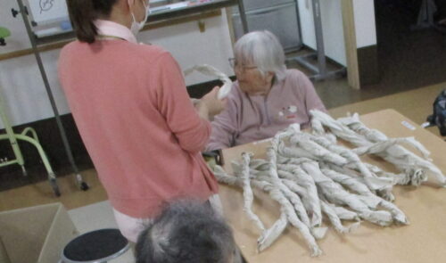 本日も空いてる時間に運動会に使う輪投げや飾りのお花を作る