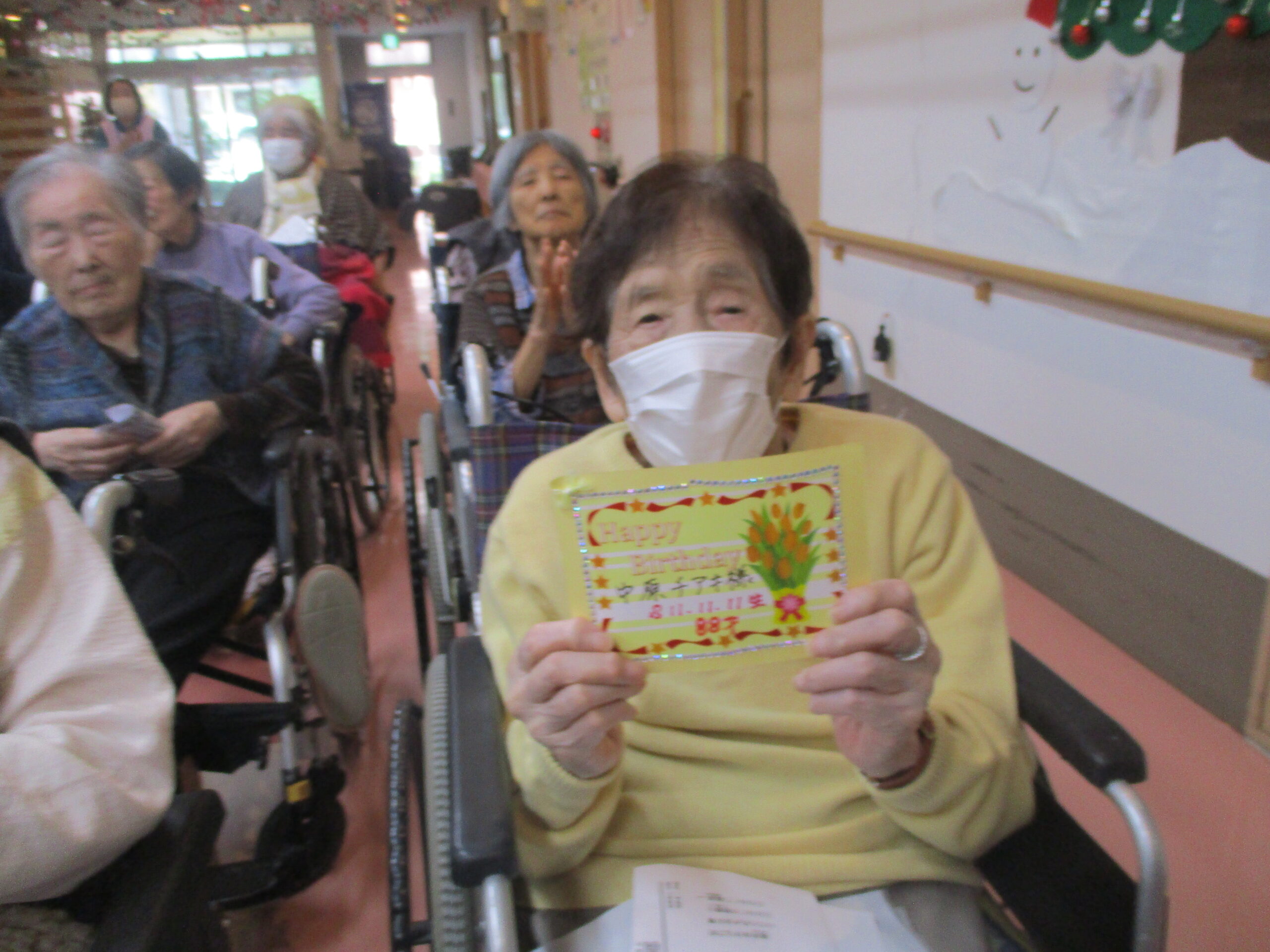 さわやか花美弐番館 さわやか花美館 11月誕生日会 2024-11-24 2024-11-24 19日に誕生日会を行いました🎂✨️ 誕生日月の皆様おめでとうございます😊👏🏼 これからも元気に笑顔で過ごせますように⭐️ 今月はまたまた舞踊会の皆さんがボランティアで披露とお祝いに来てくださいました🙇🏻✨🙏🏼 ありがとうございます🤗