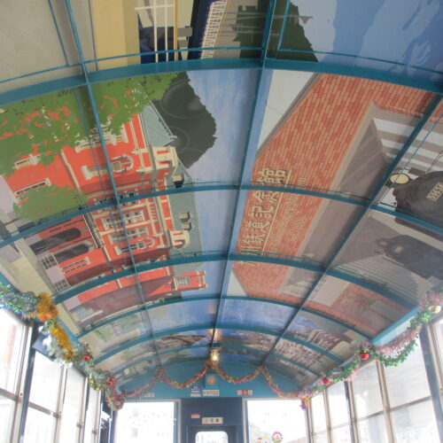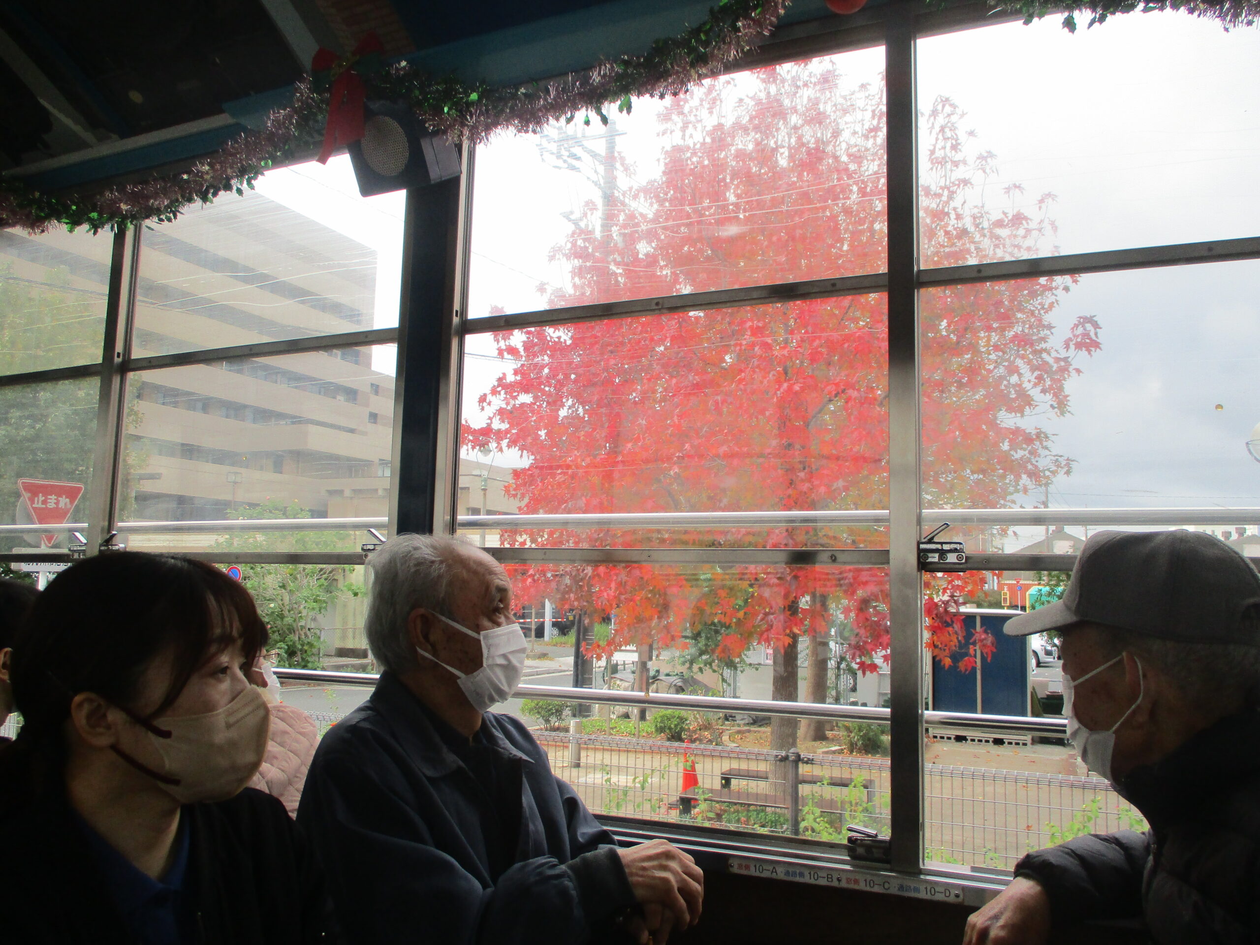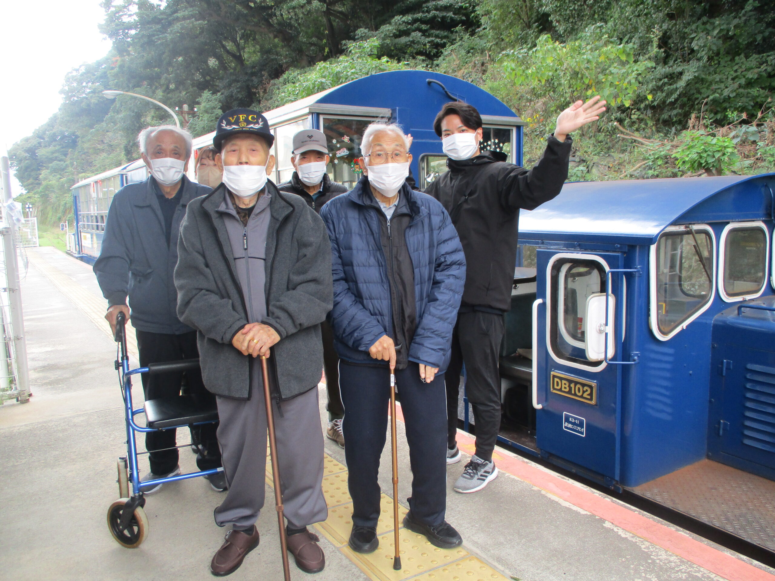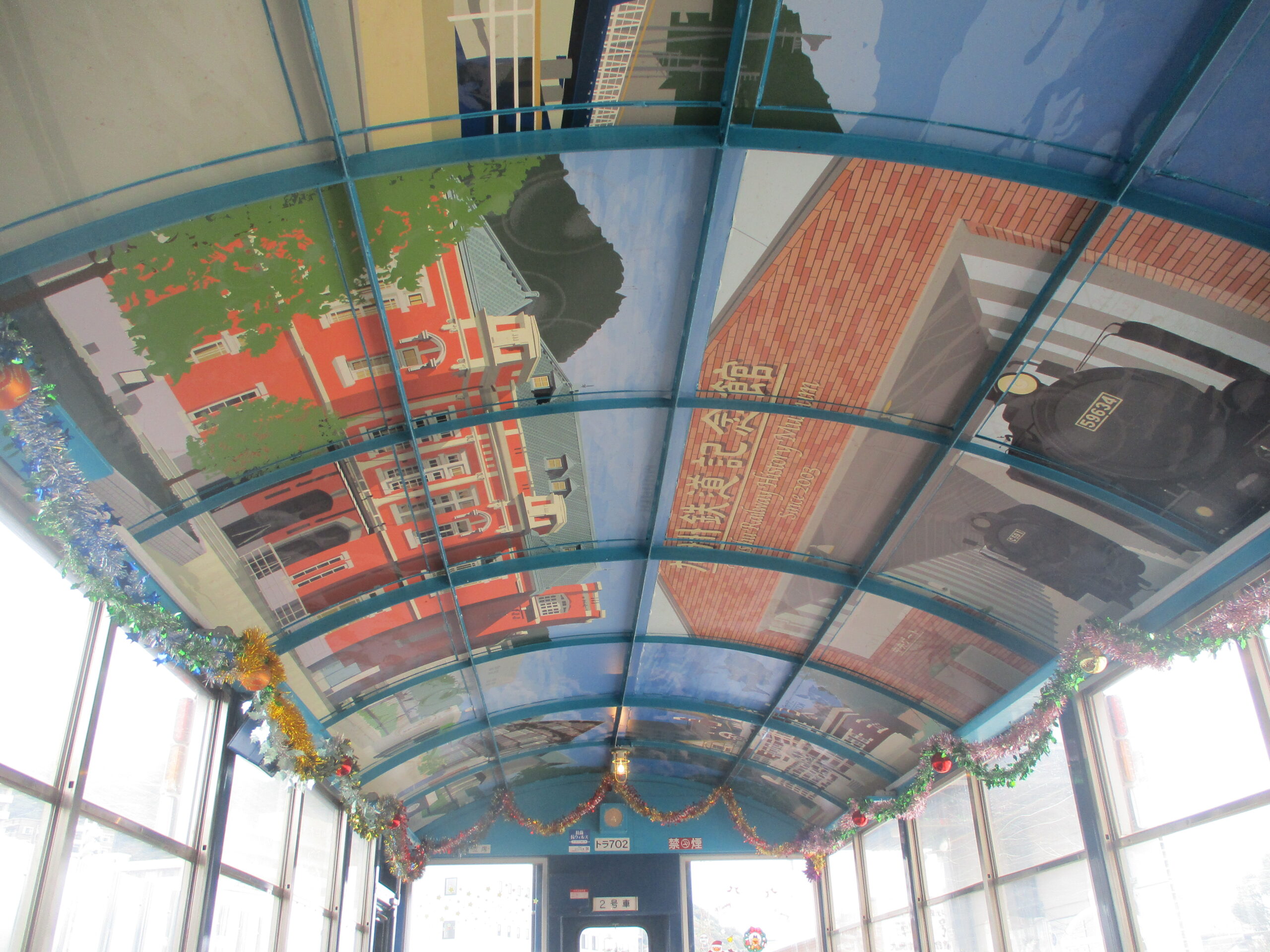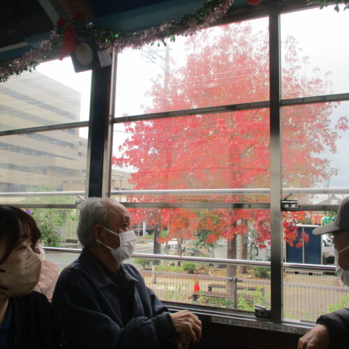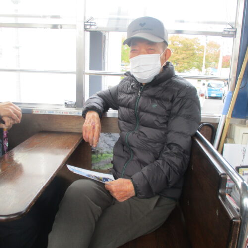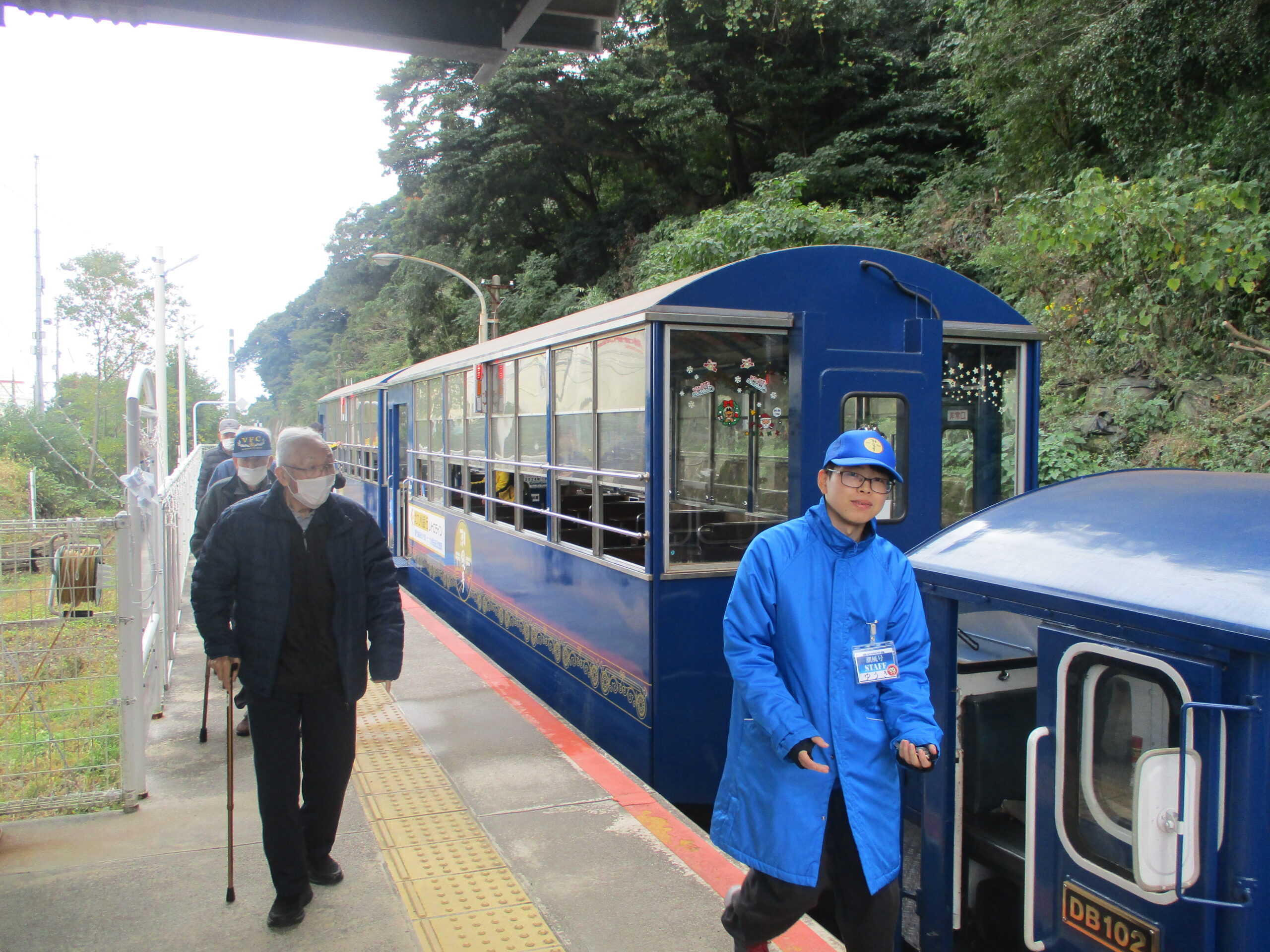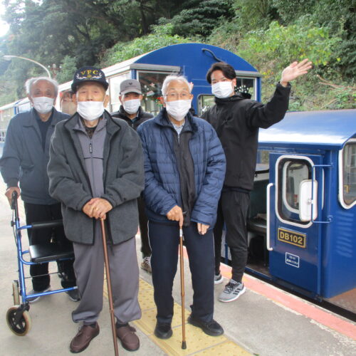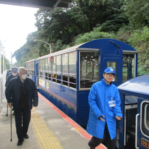 トロッコ列車「潮風号」に乗り、車内や車窓からみえる景色を堪能。