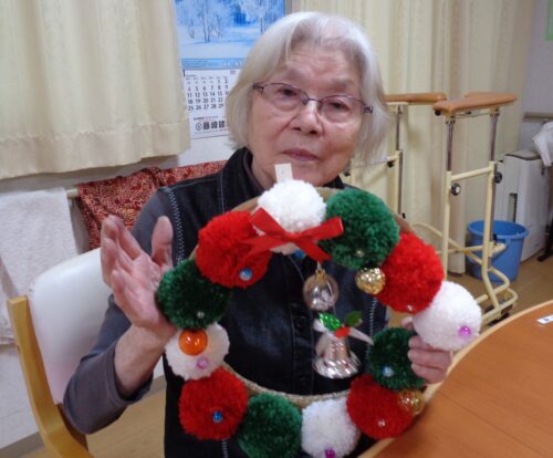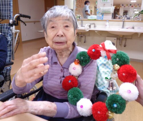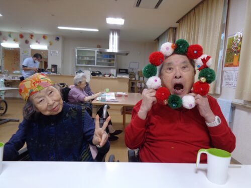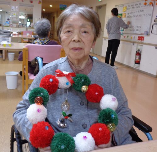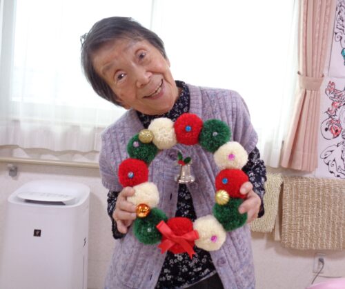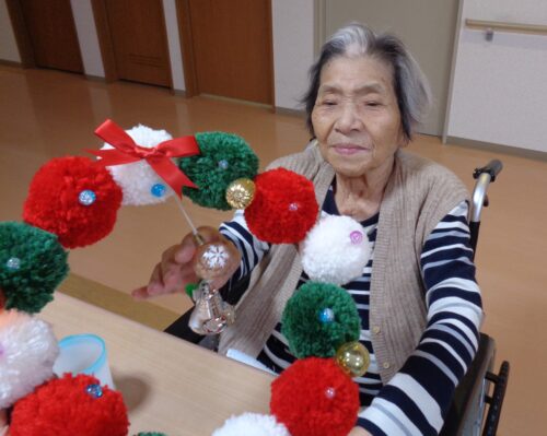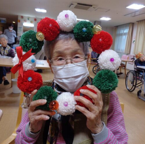 毛糸のボンボンからリボン、ビーズの貼り付けまで全て入居者様の手作業です💓💓