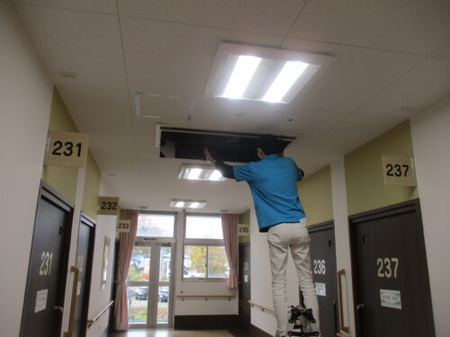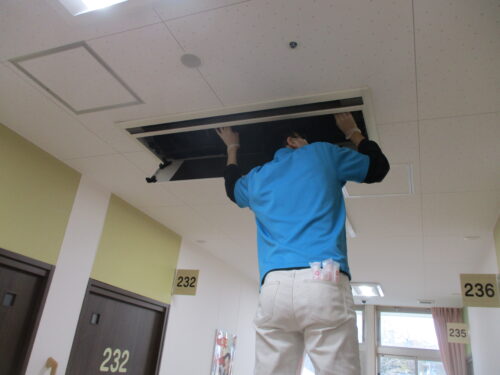 そして、廊下のエアコンフィルターを掃除をいたしました(^▽^)/