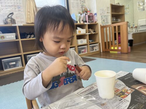 お絵描きが好きな子はコップに穴があくまで描いたりもしていました✨️