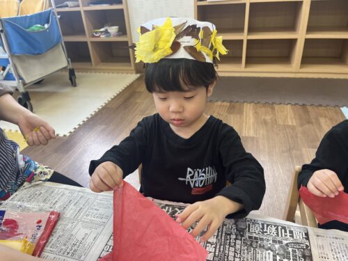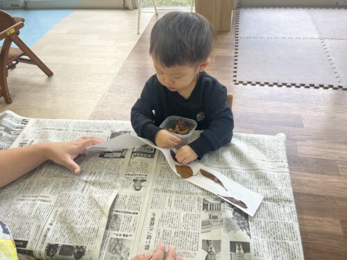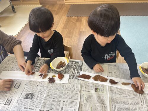 落ち葉を紙に貼っていくと作れるおもちゃです🍂🍂