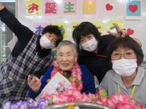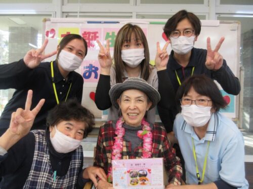 11月生まれの方の紹介をしたいと思います。デイサービスは皆様、来られる曜日がばらばらなので2回に分けてお誕生日会を行いました。