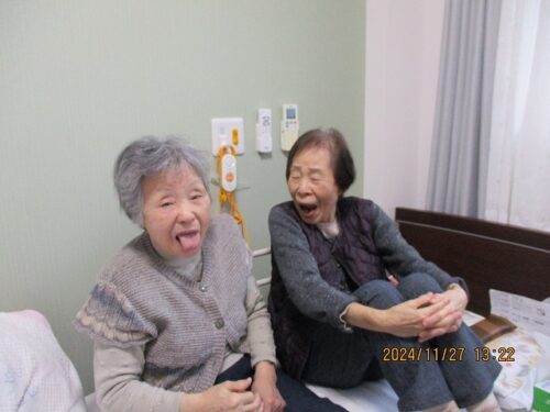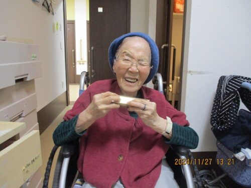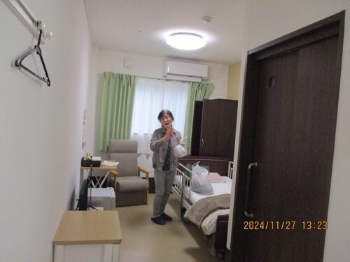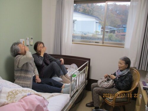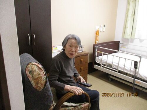 ステキなチェアーに座って、テレビ視聴中の方に挨拶をしていると