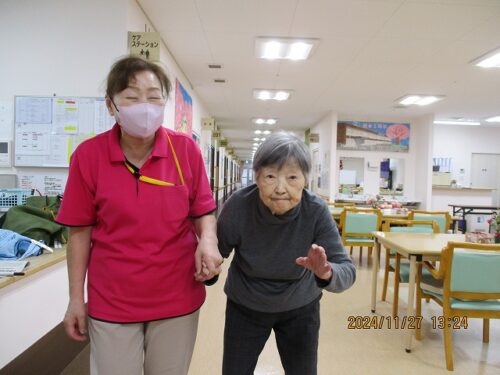 「少し運動だ!歩かないと」と館内散歩にお出かけ