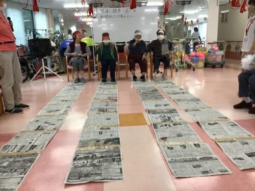 プログラム3番は「新聞手繰り寄せリレー」です。