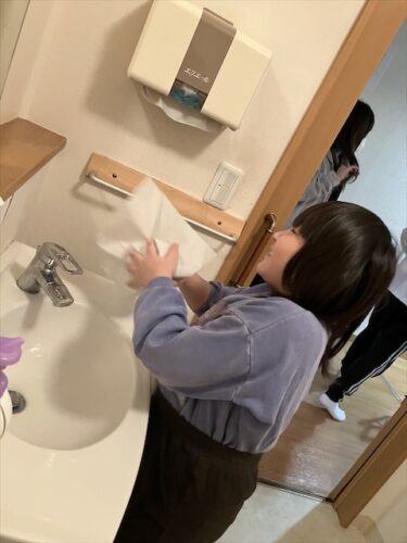 職員の声かけと共に、手洗いの仕方を見て念入りに手洗いをします!