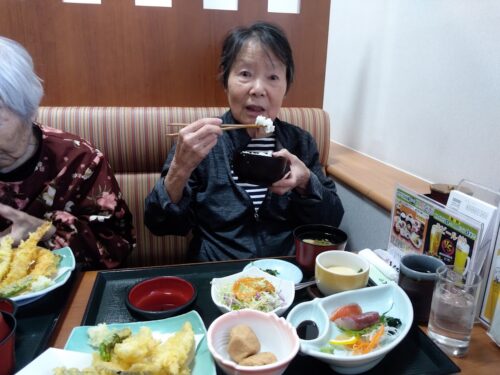 久々の外食レクリエーションで皆様とても喜ばれていました。