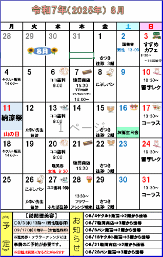 【さわやか すずめのみや】~8月イベントカレンダー~