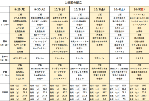 9/29~10/5の献立